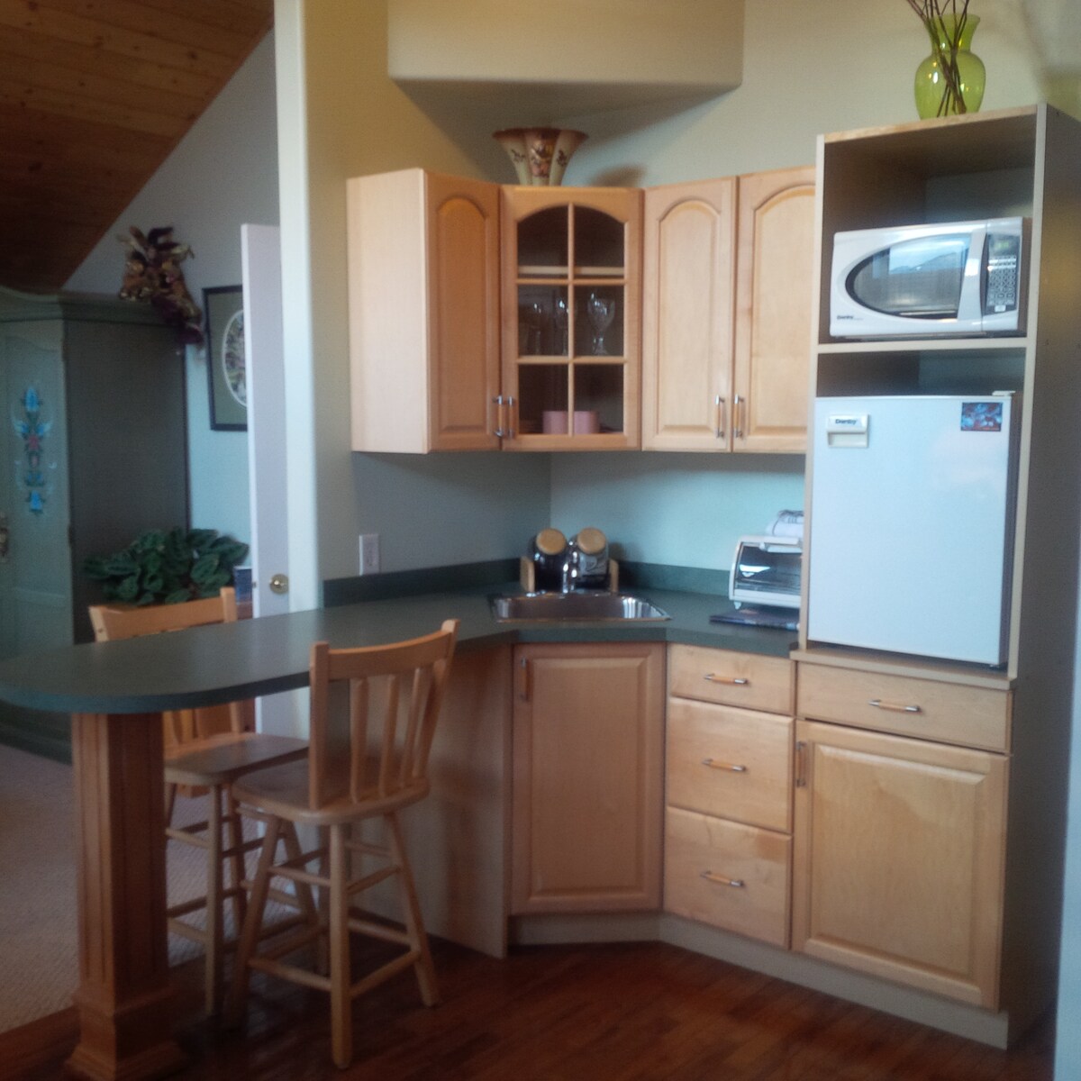 Naši smještaji su dozvoljeni od strane opštine Jasper i pridržavamo se propisa Parks Canada. Apartman je veliki studio apartman na drugom spratu našeg doma, privatni ulaz i kupatilo sa tušem. Čajna kuhinja (bez šporeta, toster) potpuno opremljena aparatom za kafu, posuđem, sudoperom, šporetom za jaja, frižiderom i prostorom za sedenje. Izuzetni plafoni i neverovatan pogled. 10 min hoda do centra grada i železničke stanice, parking u sklopu objekta.
