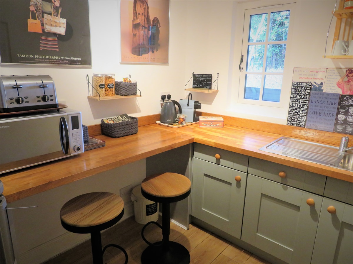 Opustite se i uživajte u ovom udobnom, bižu prostoru sa svime što vam je potrebno za odličan kratak boravak. Ovaj intimni, samostalni studio ima sopstveni ulaz, čajnu kuhinju, zatvoreni spoljašnji prostor i parking na putu - sve na mirnoj, lisnatoj lokaciji. Centralna lokacija, u blizini univerziteta Vorvik i Kov (2 m), železničke stanice (1 m), Kenilvorta (4 m), Lemington Spa (10 m), aerodroma Birmingem (11 m), NEC & Resorts World (9 m), NAEC (4 m) Cov Arena (4 m). Boravci od jednog noćenja mogu se rezervisati 4 sedmice ili manje unaprijed.
