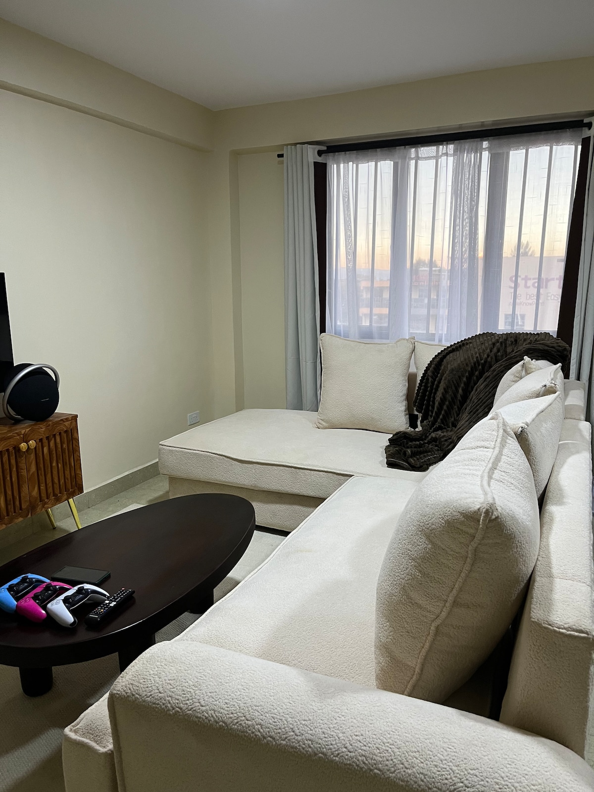 Discover the ideal affordable short-term stay located on a 5 - minutes drive away from Nanyuki town. Ideal for solo or group travellers, this clean, well-furnished 2-BR apartment features a functional living area, high speed Wi-Fi , a fully equipped kitchen & 2 comfortable bedrooms. Enjoy hot water showers & a private balcony for relaxation. Located just minutes from local malls, eateries, entertainment hubs & attractions, this unit is the perfect base for your stay while exploring Nanyuki.
