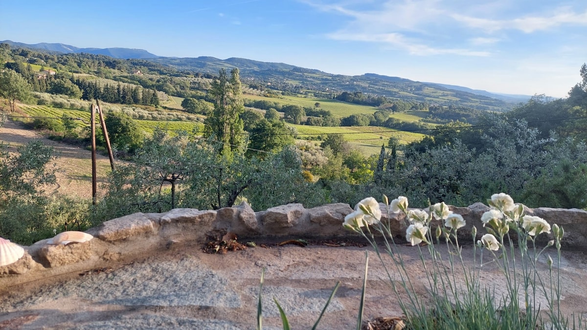 La Cour de Blaches, a small domaine at 2 km from Nyons, charming little studio INCLUDING breakfast, linen, WIFI. Private parking , private swimming pool, private entrance, private terrace. Use charging station on request. Quietly situated between the olive groves and the vineyards with fantastic views of Nyons. In the morning we bring fresh bread, croissants, juice, butter and jam at your doorstep for a quiet breakfast at a self-chosen moment on your private terrace with a view of Nyons.
