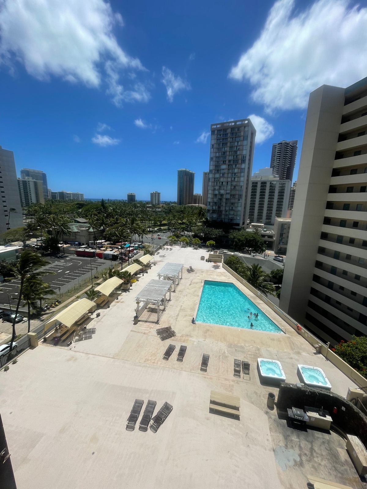 220 kvadratnih stopa. Na početku Vaikikija, turističkog centra Honolulua, ovaj šarmantni studio udaljen je oko 10 minuta hoda od plaže i svih dešavanja. Preko mosta do Kongresnog centra i 15 minuta hoda do tržnog centra Ala Moana. Autobuska linija je prekoputa. Studio je potpuno namješten - krevet pune veličine,TV, Wi-Fi, frižider srednje veličine, kupatilo, mikrotalasna pećnica, aparat za kafu, indukciona ploča za kuvanje. Zgrada ima vešeraj, bazen, đakuzi i prostor za roštilj; uz dodatnu naknadu možete da koristite teretanu i parking koji se plaća. TA-095-389-2864-01