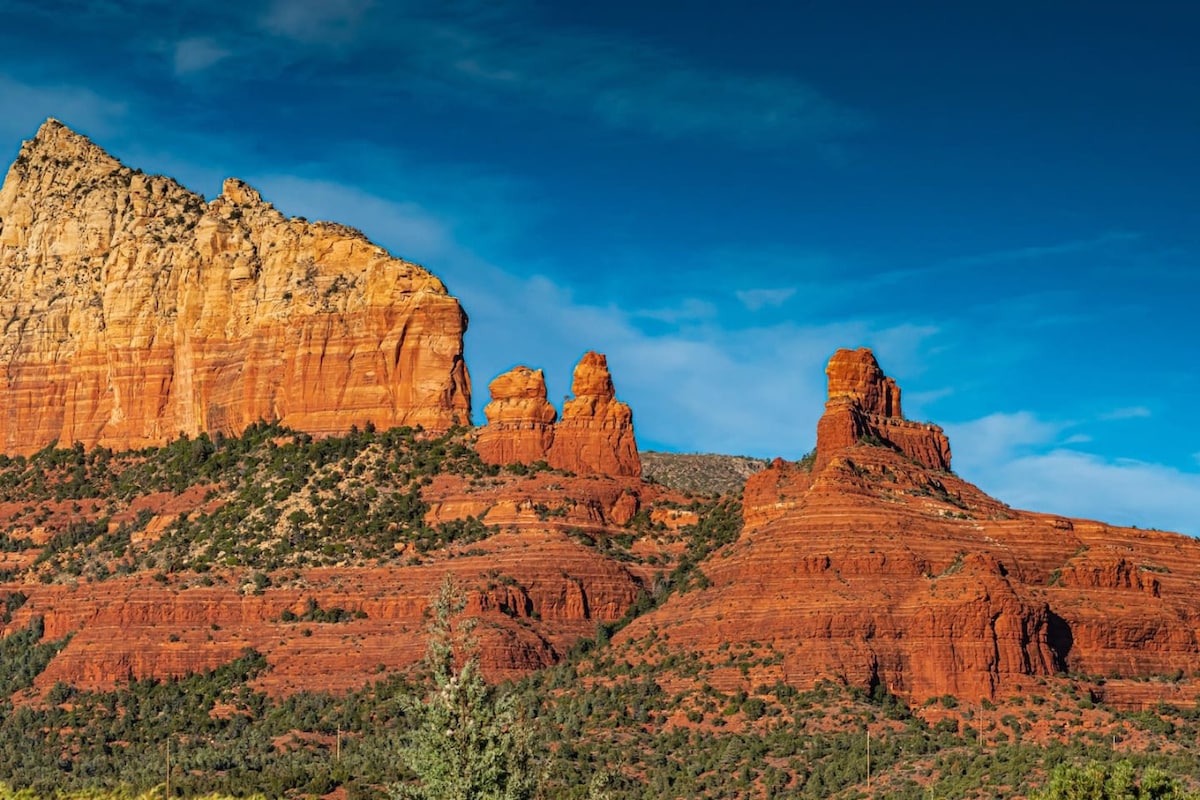 Red Rok Roost – Sedona • Nekoliko minuta do legendarnih staza: Đavolji most, kanjon Bojnton, pećina za porođaj i drugo • Upijajte hidromasažnu kadu ili se opustite pored ognjišta s pogledom • Staza iza kuće za planinarenje ili vožnju biciklom • Epski pogledi na Cathedral Rock, Thunder Mountain, Coffee Pot Rock • Udobno i prostrano za porodice i prijatelje • Pogodno za pse (2 psa uz naknadu, detalji u kućnom redu, dvorište NIJE ograđeno, psi moraju biti navedeni u rezervaciji)