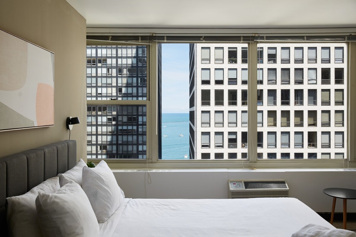 Zadivljujući apartman od 1200 kvadratnih metara sa velikim prozorima, otvorenim rasporedom prostorija i pogledom na grad/jezero u različitim pravcima. Ova svijetla i moderna dvosobna, jedna jedinica u uglu kupatila savršena je za putnike koji traže elegantan bijeg na nebo u centru Čikaga, odmah pored veličanstvene milje i jezera. Objekat ima odlične sadržaje, uključujući neverovatnu krovnu terasu sa pogledom na horizont i jezero od 360 stepeni. Ovo je najbolja lokacija u gradu!