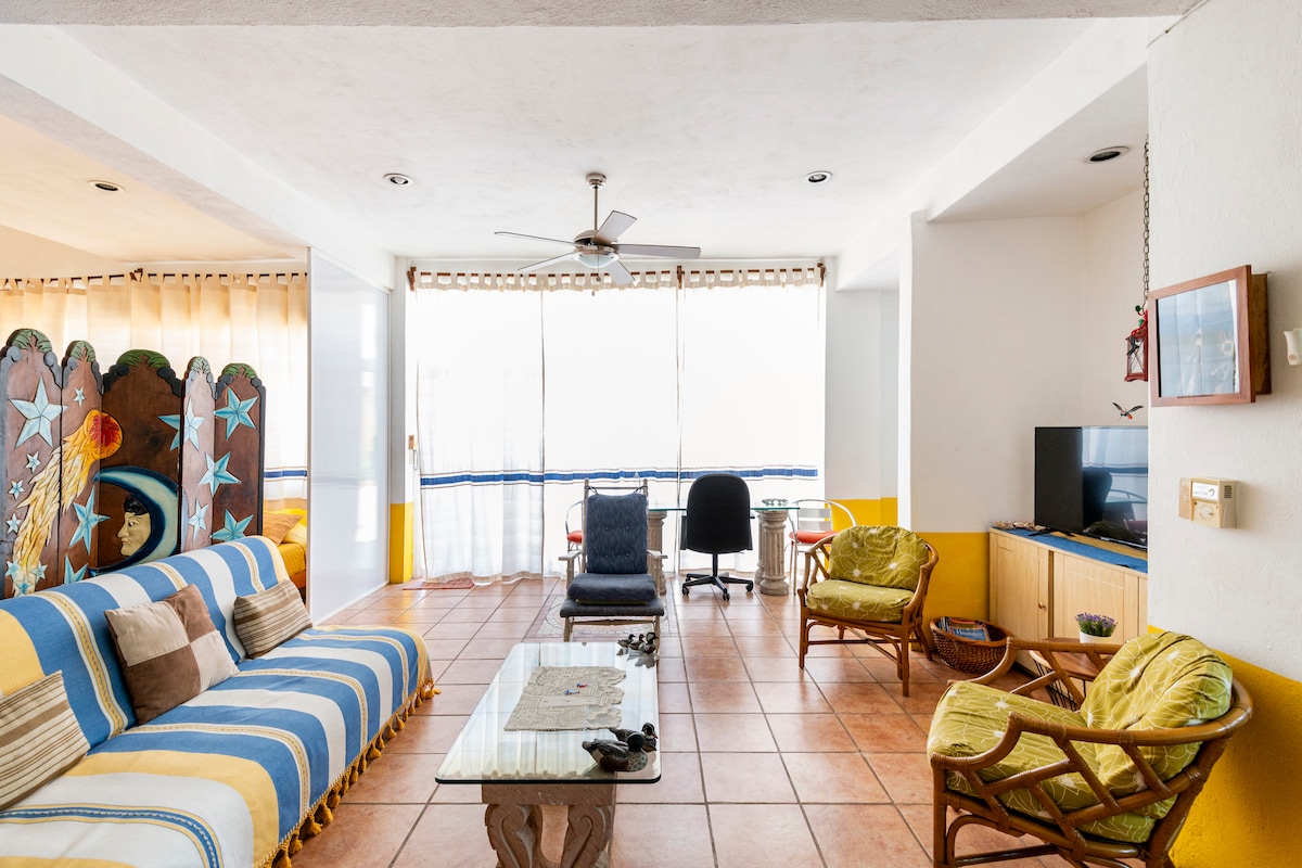 Spacious 65 sqm top-floor loft just 47 steps from Zicatela Beach. Features a king bed with A/C, full kitchen, Smart TV, and a private balcony with partial ocean views. Includes daily housekeeping, Starlink WiFi, two shared pools, a poolside bar with drinks and breakfast options, luggage storage, and on-site front desk assistance. Ideal for couples or solo travelers seeking comfort, privacy, and beach lifestyle near La Punta.