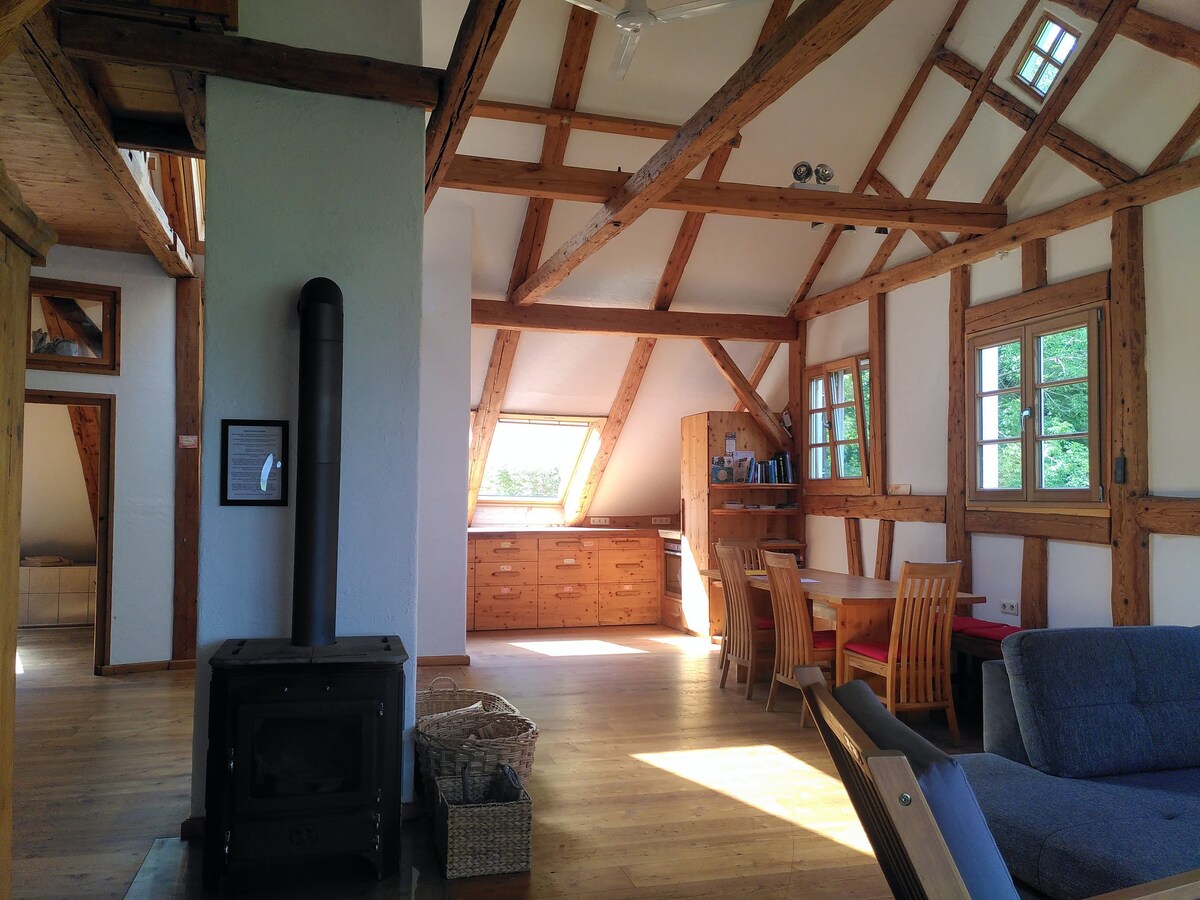 Od oktobra 2021. godine nudimo luksuzan stan u potkrovlju sa visokokvalitetnom opremom u našoj novoizgrađenoj drvenoj kući. Od fasade sa šindrom od bele jele do našeg pravog parketa od drveta, ništa ne nedostaje kada je u pitanju dobar osećaj. Naši čvrsti drveni zidovi ne samo da pružaju optimalnu unutrašnju klimu za osobe koje pate od alergija, već našim gostima pružaju i osjećaj da doživljavaju prirodu na svojim četiri zida.