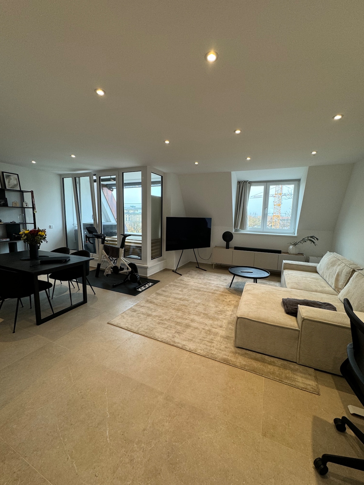 Luksuzni penthaus sa terasom na krovu i hidromasažnom kadom Elegantan penthaus sa privatnim liftom, terasom na krovu površine 350 m², hidromasažnom kadom i prostranim dnevnim boravkom. Samo 5 minuta do U3 Forstenrieder Allee – 15–20 minuta direktno do Theresienwiese (Oktoberfest). Za najviše 8 gostiju: 2 dvokrevetne spavaće sobe + 1 soba s krevetom na sprat i krevetom za jednu osobu. Potpuno opremljena kuhinja, luksuzno kupatilo, XXL kauč, stoni tenis, trampolina i još mnogo toga. Napomena: Od četvrtog gosta pa nadalje, primjenjuje se dodatna naknada za čišćenje u iznosu od 20 € po dodatnom gostu.
