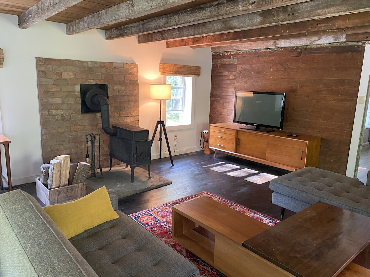 ***ISTAKNUTO U ARHITEKTONSKOM UREĐAJU, PUTOVANJU I SLOBODNOM VREMENU, TERAPIJI APARTMANIMA I PUTOVANJIMA FODORS*** Smještena na malom privatnom putu, ova brvnara koja datira iz 1800-ih nalazi se iznad potoka Callicoon, popularna među muharima koji bacaju pastrmku. Idite uz šumoviti prilaz i nađite se na mirnom zelenom čistini. Kabina i studio pružaju miran odmor, zaštićeni od okoline, ali neverovatno pogodni za dolazak do obližnjih gradova i aktivnosti.