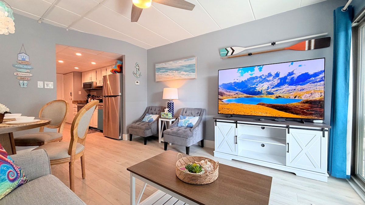 Ispred jezera u odmaralištu Sea Colony Resort! Šetnja do plaže, bazeni, tenis/pikbol, postavljanje zelenila, boćanje, shuffleboard, ribnjaci, fitnes centar i još mnogo toga! Obezbjeđenje non-stop. Potpuno renovirana. Dobro opremljena kuhinja ima svijetli dnevni boravak/trpezariju sa sjedištem za 6 osoba. Klima-uređaj, roštilj na ugalj, mašina za pranje/sušenje veša, Wi-Fi, 3 televizora sa ravnim ekranom i 3 bračna kreveta (širine 150–179 cm). Tramvaj i bazen na plaži preko puta. Velika terasa s pogledom na jezero. Zabranjeno je pušenje i kućni ljubimci.