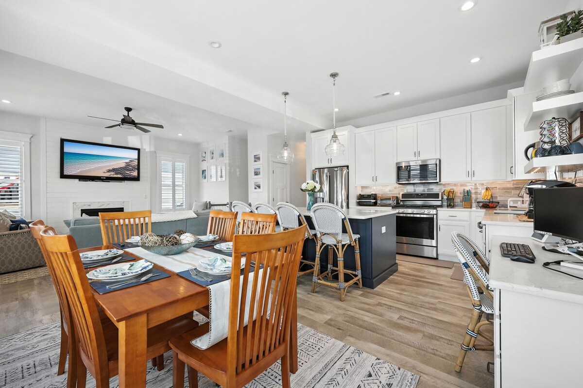 Odmorite se u ovom novom, prostranom i potpuno opremljenom smještaju u mirnom i prelijepom South Endu u Oušn Sitiju. Savršeno za porodice, uključujući bake i djedove :), koje žele da uživaju na plaži, zalascima sunca s pogledom na zaliv i atrakcijama bez vrhunske ljetnje gužve. Idealno i za osobe koje rade na daljinu i koje bi imale koristi od mirne, ali energične lokacije za rad od kuće. Ovo „sretno mjesto” je dobro opremljeno za sve, od beba i male djece, do avanturista na otvorenom, do profesionalaca i gurmanskih kuvara!
