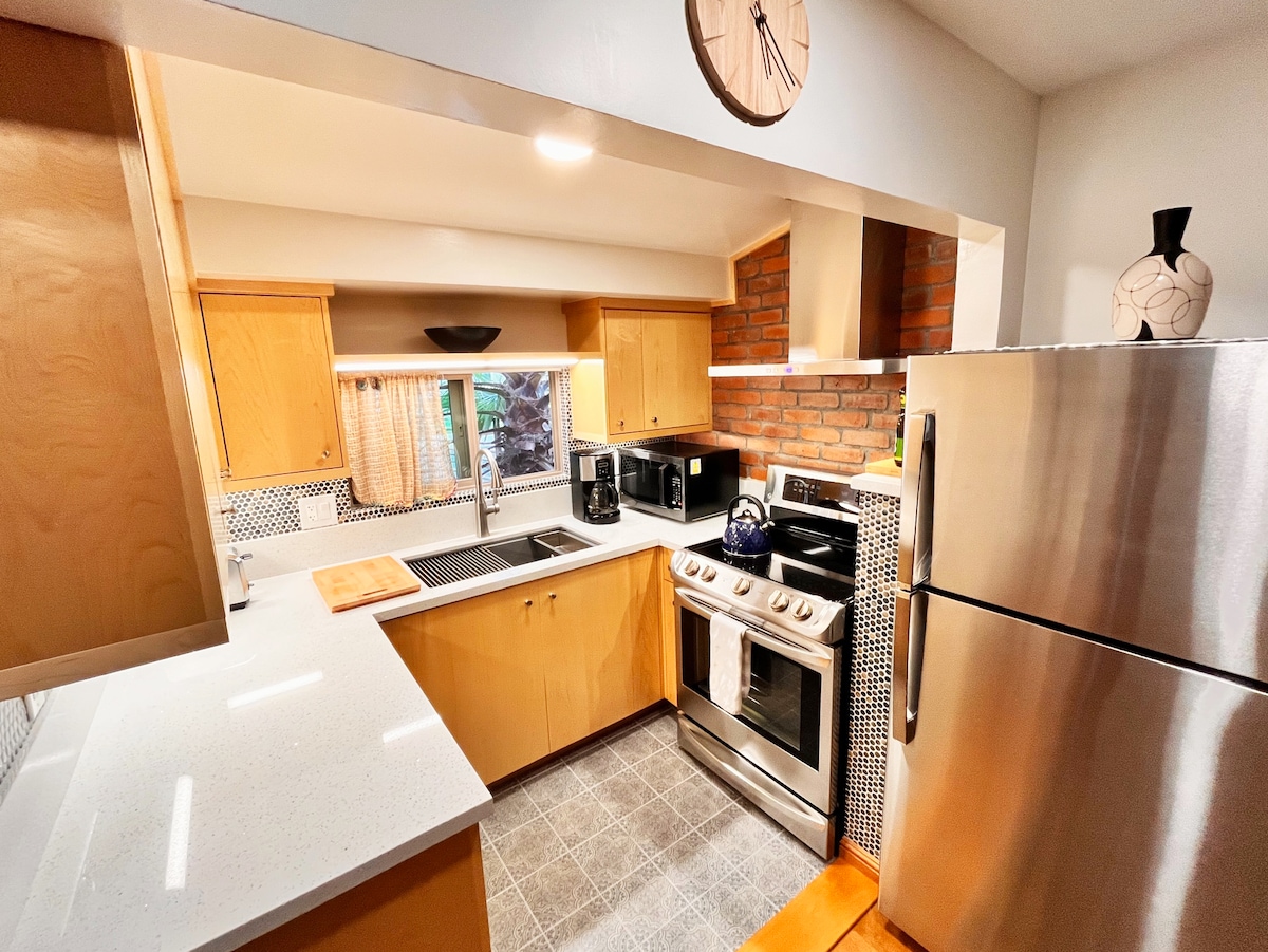 **Nedavno ažurirana**Ova gostinjska kuća za odmor od 526 kvadratnih stopa sa 1 spavaćom sobom, 1 kupatilom i ograđenim privatnim unutrašnjim dvorištem. Gostinjska kuća je u potpunosti opremljena svime što vam je potrebno, uključujući grijanje/klimatizaciju, plafonske ventilatore, striming TV sa YouTube TV-om u dnevnom boravku i spavaćoj sobi, mašinu za pranje i sušenje veša, potpuno opremljenu kuhinju, dnevni boravak i sve što vam je potrebno za dan avanture na plaži. Tu je i potpuno kupatilo inspirisano spa centrom sa prelijepom tuš-kabinom.
