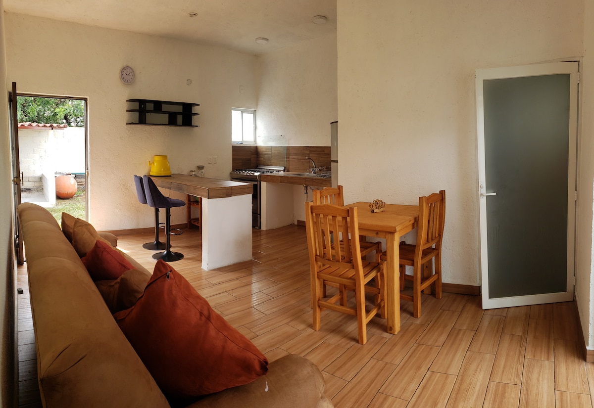 Želimo da podijelimo ovaj prelijepi seoski prostor za odmor kako biste mogli da napunite energiju u mjestu punom drveća i harmonije. Nalazi se u gradu Santa Marija Ahukatitlan i na pet minuta od Kuernavake. Kuća ima parking za 3 automobila, veoma veliku baštu i dobar roštilj. Smještaj za 7 osoba sa 2 bračna kreveta, 1 bračnim krevetom i 1 jednostrukom. Kuhinja i pribor za jelo. - Zabave ili okupljanja se ne prihvataju. - Srednji kućni ljubimci u zadnjem prostoru