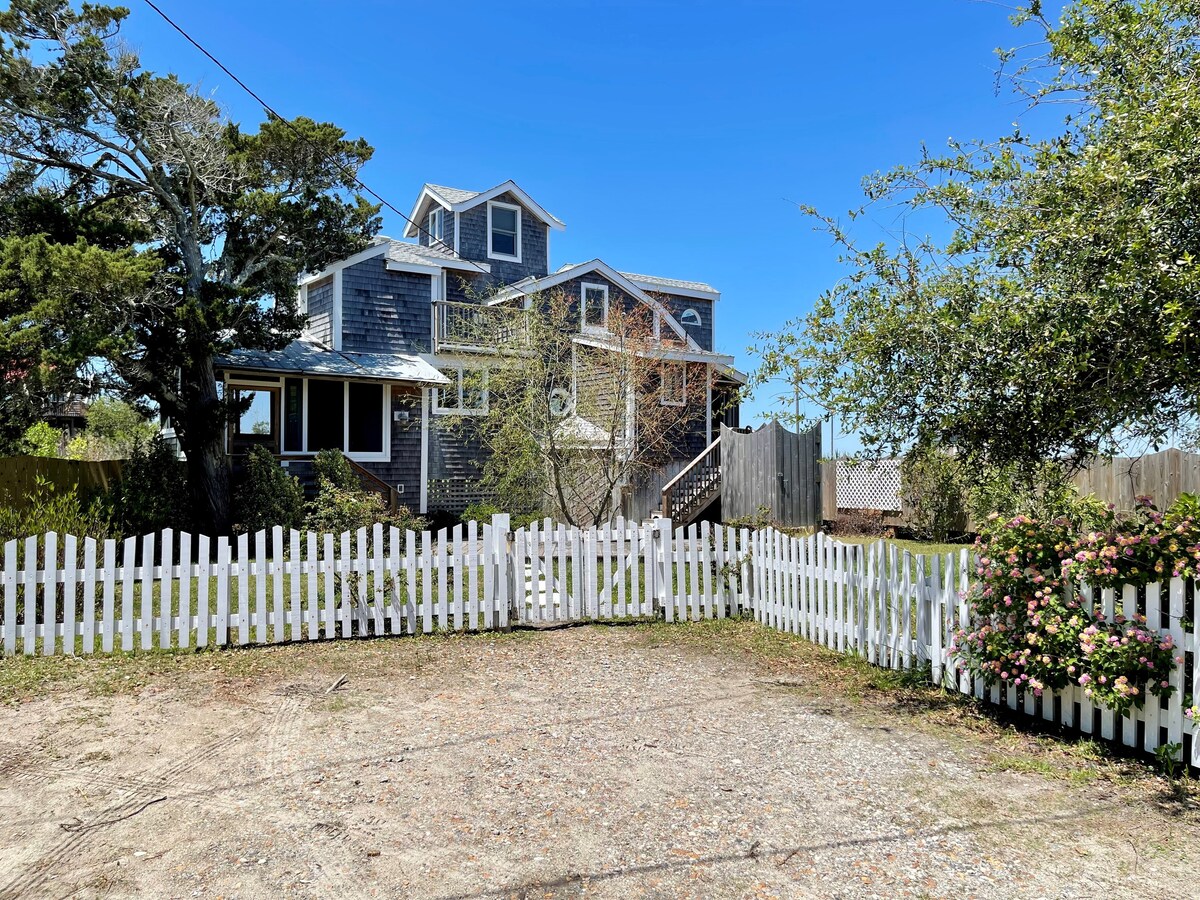 Welcome to The Grey Pearl, a wonderful historic Ocracoke cottage that is conveniently located in the heart of the village. Pearl offers a spacious open floor concept featuring connected Kitchen, Dining and living spaces- and a lovely screeded porch. It is located within walking distance to Silver Lake, Coffee/Juice spots, Restaurants and shops ! We are pet friendly with a 90% fenced in yard space. Some pet amenities provided. We would be honored to host for your family !