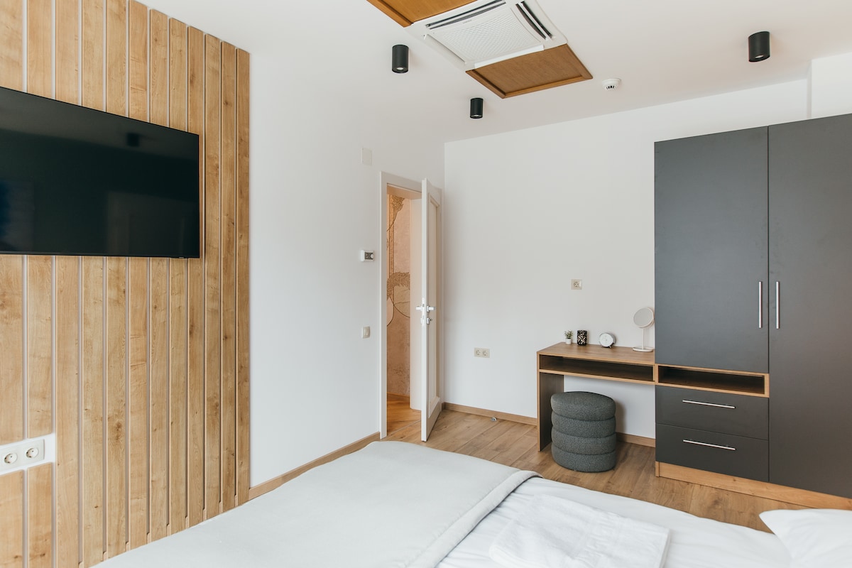 The Deluxe Apartment is the most spacious apartment in Nozon Apartments, which is the perfect place for 4-6 people. Ogromna dnevna soba, moderna kuhinja, udobne spavaće sobe i funkcionalno kupatilo gostima pružaju sve što je potrebno za ugodan i udoban boravak. Uživajte u luksuzu i udobnosti apartmana Deluxe!