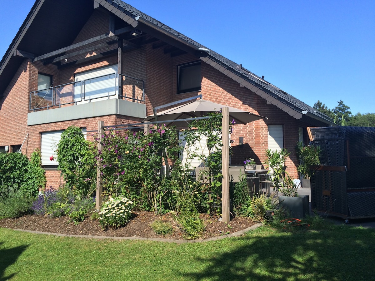 Udobno razvijeno Stan u potkrovlju (u niskoenergetskoj kući) usred prirode. Prijatno hladno ljeti i ugodno toplo zimi. Uređen je s ljubavlju... i... potpuno opremljen. Sa balkona se pruža odličan pogled na mali potok, polja, livade...i... 😊 .....naša prelijepa šuma Teutoburg.