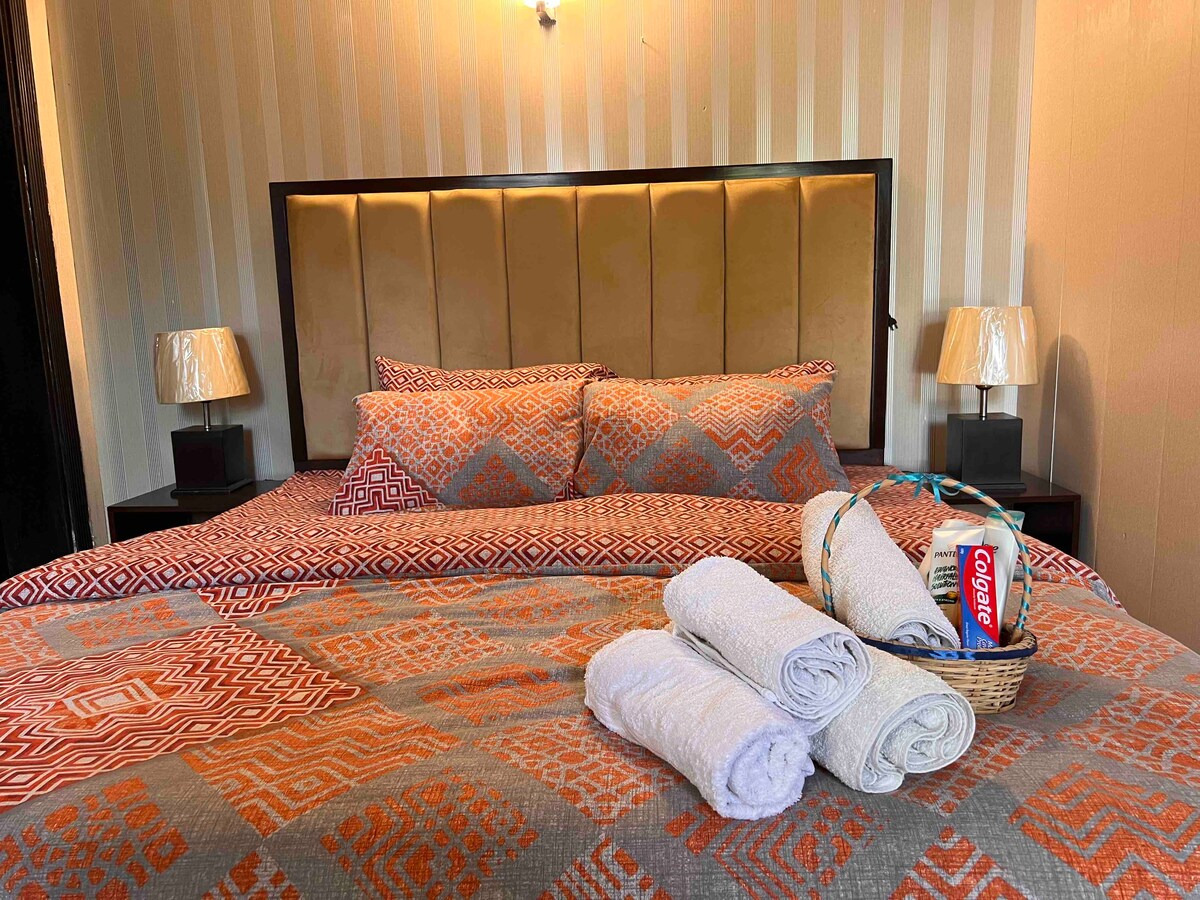 Ovaj potpuno novi, potpuno namješteni luksuzni penthaus. Smješten samo 1 minut hoda od autoputa Karakoram, to je idealna stanica za putnike koji idu u Sjeverna područja ili Abbottabad. Ovaj moderni stan se nalazi na pješačkoj udaljenosti od Frontier Medical Collegea, Abbottabad Medical Collegea, savršenog za studente, posjetioce ili profesionalce. Uživajte u bezbrižnosti uz non-stop bezbjednost i jednostavan pristup restoranima, besplatnoj teretani, prodavnici prehrambenih proizvoda u zgradi i svim glavnim mjestima u gradu.