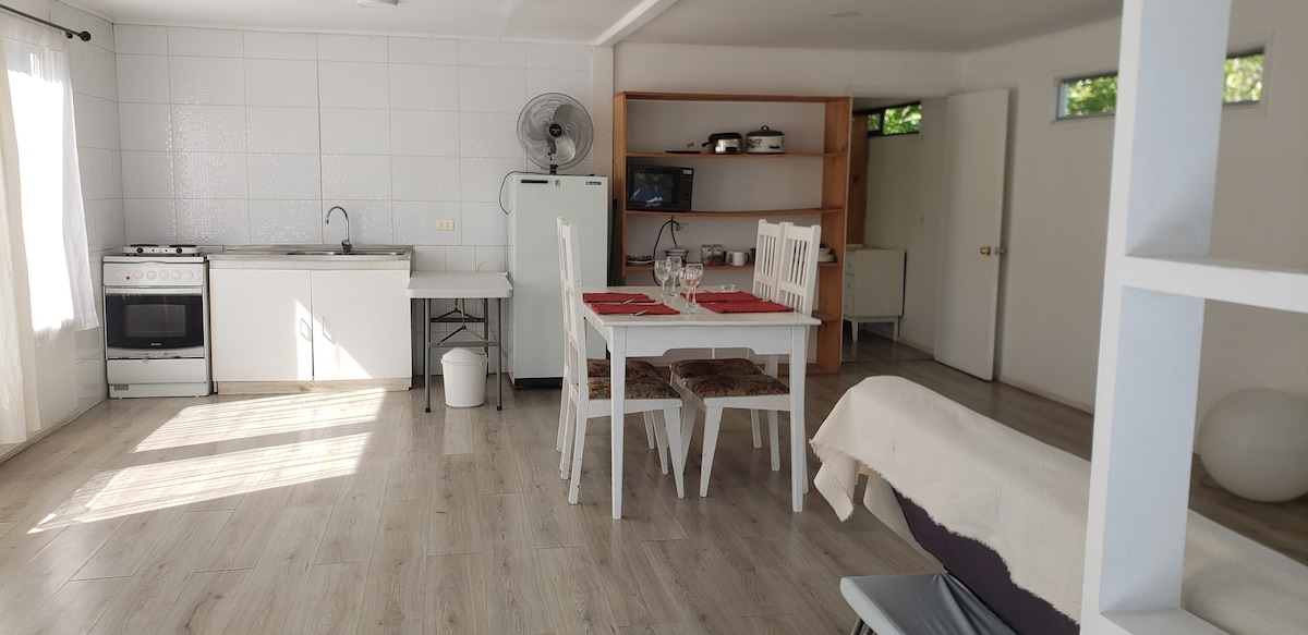 Uživajte u miru potkrovlja Antulemu za dvije osobe s panoramskim pogledom na šumu. Stepenice do plaže i u srcu Pičilemua. Nalazimo se na deset minuta od autobuskog terminala, na korak od supermarketa i prodavnica. Naše potkrovlje je kompletno opremljeno, sa posteljinom, peškirima, kuhinjom, frižiderom i roštiljem. Nema parkinga. Prihvatamo kućne ljubimce, ali morate da ih unesete u rezervaciju kao kućnog ljubimca jer se dodatno naplaćuje.