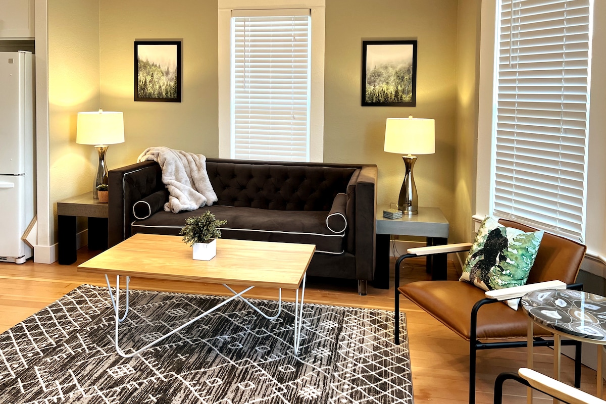 Opustite se na ovom jedinstvenom i mirnom odmoru. Ovaj rustikalni i udobni smeštaj za odmor sa 1 kupatilom, sve što vam treba za opuštajući odmor jeste vi i vaši najmiliji (uključujući i krznene prijatelje). Danju istražite šetnje koje oduzimaju dah u Mt. Nacionalni park Rainier, i dođite uveče, počastite bolne noge za podmlađivanje u privatnoj hidromasažnoj kadi u brvnari. Ova divna brvnara se nalazi na lokaciji koja omogućava pešačenje do restorana i samo nekoliko koraka do centra Ešforda i reke Nišli.