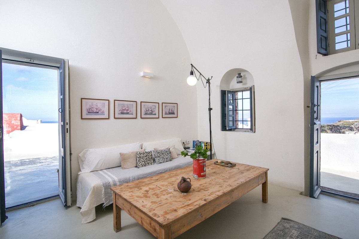 Ovo je studio za 2 gosta. Ima malu kuhinju i prostor za sedenje. Postoji privatni balkon sa pogledom na Kalderu. Nalazi se na mirnom mestu nekoliko minuta hoda od glavne staze i dela grupe studija i pećinskih kuća Pano Meria.