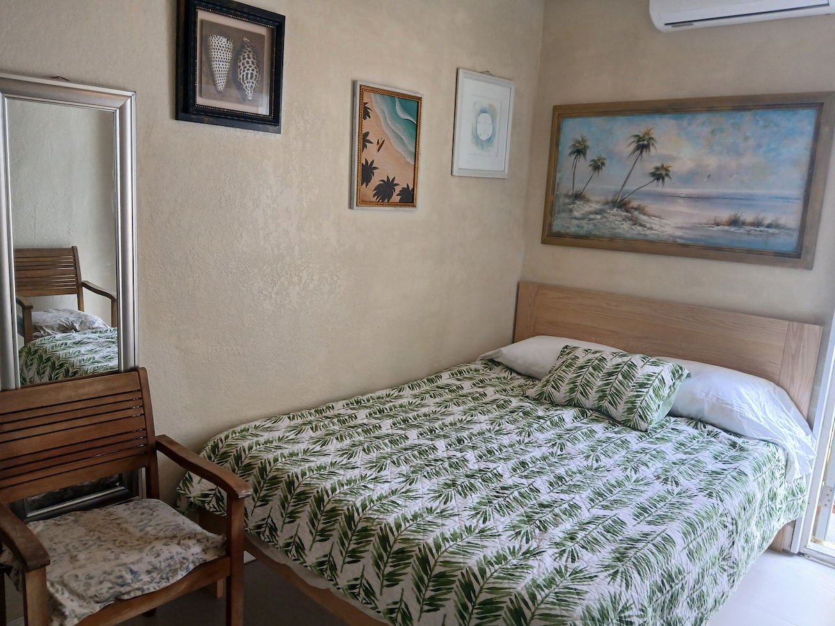 Privatni studio apartman povezan sa našim domom. Studio ima kupatilo sa (tuš kabina je uključena), kuhinju (frižider/zamrzivač, mikrotalasnu rernu, električni šporet), veliki ugradbeni ormar, udoban krevet u punoj veličini i 48-inčni, TV sa ravnim ekranom. Garsonjera je klimatizovana i ima plafonski ventilator. Gosti imaju privatnu terasu u dvorištu. Tu su i mašina za pranje i sušenje veša i bicikli za krstarenje plažom, stolice za plažu i suncobran. Parking je besplatan na ulici u ulici Harison.