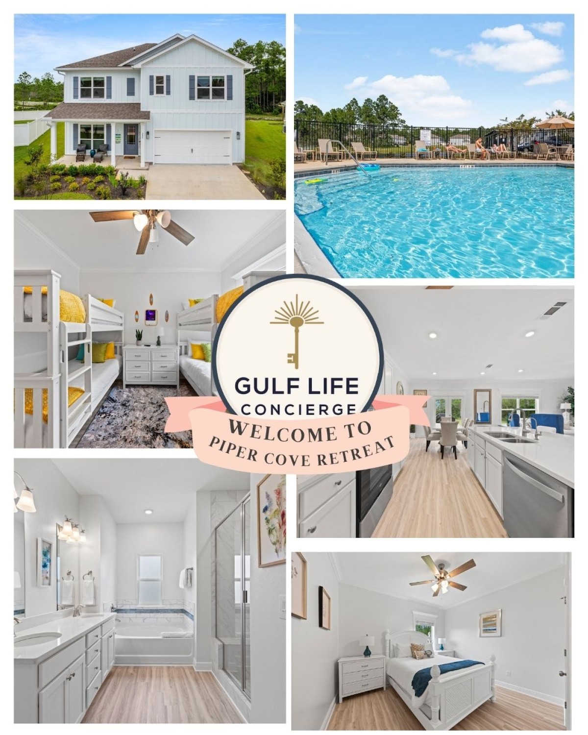 Gorgeous 4-bedroom 3-bath beach cottage along popular Scenic Hwy 30A. Located in the quaint coastal community of Blue Mountain Beach, this beautifully designed home is a short distance to the picturesque emerald-green waters and sugar-white sand beaches of the Emerald Coast! Our stunning home is a 13-minute walk or a 4-minute bike ride to the beach and walking distance to local restaurants and shops. You will enjoy a fully stocked kitchen, comfortable bedrooms, community pool access & more.