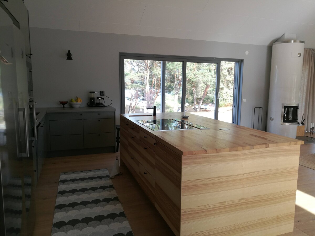 Moderna stuga, egen strand i Bastu