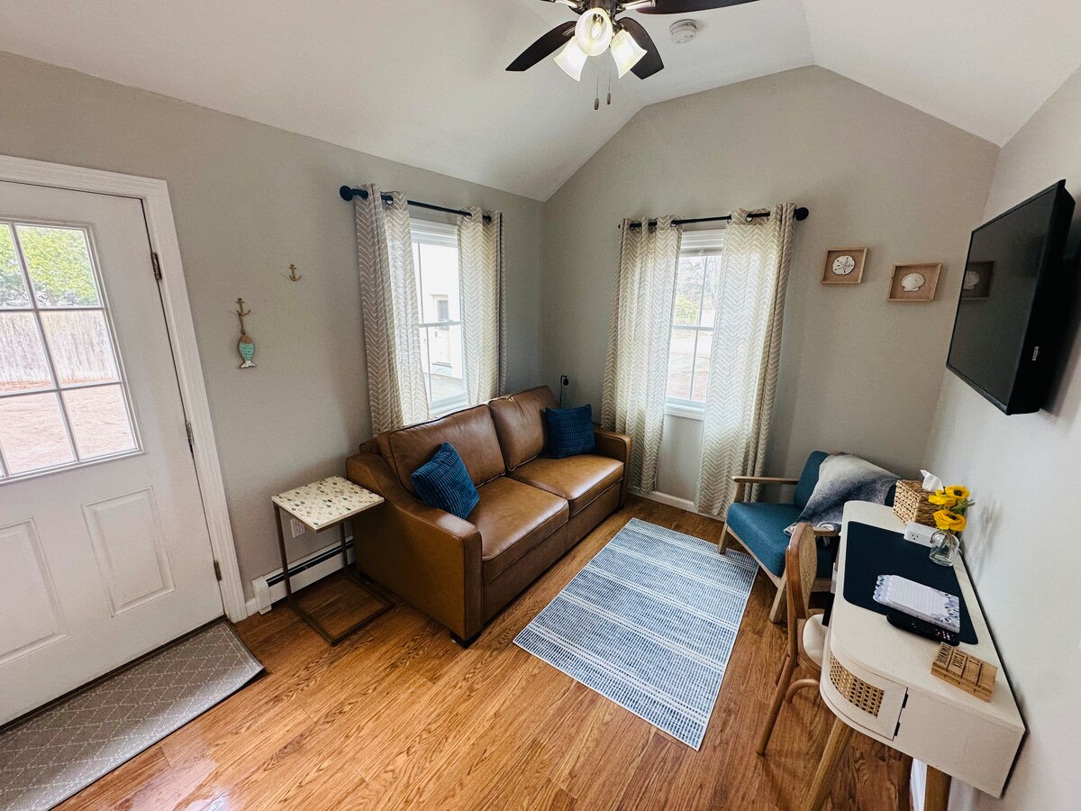 Dijelimo naše „srećno mesto“. Udobna seoska kućica pogodna za porodice ima sve što vam treba za uživanje u divnom odmoru u tipičnom gradu Nove Engleske. Idealno se nalazi između čuvene zelene, predivne plaže u luci i gradske plaže, svuda je lako prošetati. Stopa visoke sezone/vikenda odražava se u opštem pogledu - proverite da li je stvarna. Preporučeno za grupe do 4 osobe (5 ako imate decu). Druga spavaća soba (bračni krevet) je otvorena za dnevni boravak. Obezbeđujemo sklopivi ekran za vrata i zavesu za „prolaz“.