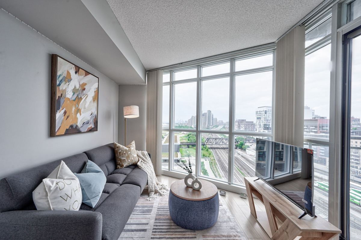 Dobrodošli u Fort York Flat! Ovaj 2 spavaće sobe, 1 kupatilo prostor je pažljivo renoviran koristeći mešavinu modernog i savremenog dekor da stvori opuštajući, upscale mesto da se opustite dok uživate u svemu Downtown Toronto ima da ponudi. Naša lokacija i pametni sef za ključeve koji se nalazi na ulaznim vratima olakšavaju ulazak u stan više nego ikada, nema potrebe da brinete o gužvi sa osobljem na recepciji ili čekate liftove.