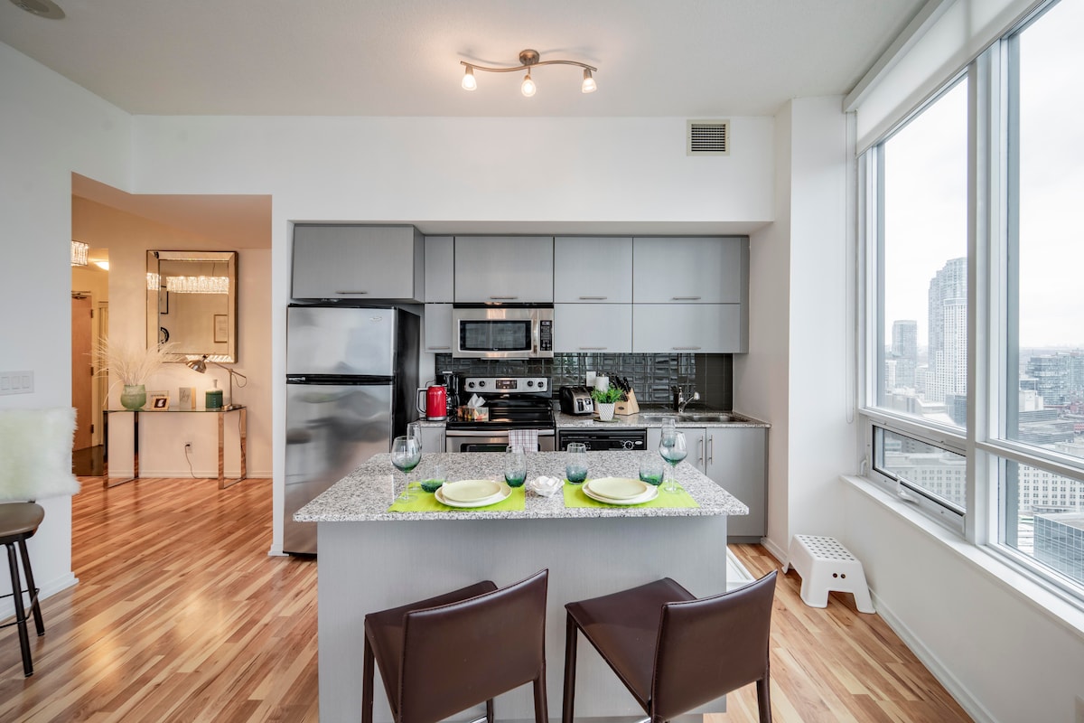 Uživajte u našem luksuznom stanu u butik stilu u živopisnom gradu u centru grada. Pored glavne koncertne dvorane Scotiabank Arena, banaka, prodavnica alkoholnih pića i supermarketa, sportskih barova i restorana. Pristupite cijelom gradu stazama od zgrade do stanice Union. Do CN tornja se stiže peške! Dizajnerske završne obrade za razliku od bilo čega u okolini. Besplatne usluge konsijerža koje pruža poseban tim za upravljanje objektima - obilasci, noćni život, restauracija, usluge privatnog kuvara i još mnogo toga!