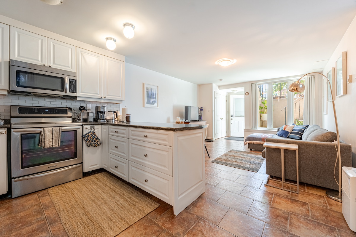 Udoban apartman za neženje koji se nalazi u prijateljskom delu grada u Torontu. Udaljenost do šetališta i prodavnica ulica Kingston Road i Kvin Strit i Kvin. Pristup tranzitu ili brzom Uberu do centra grada. Bračni krevet (širine 150-179 cm), potpuno opremljena kuhinja, kamin, mašina za pranje/sušenje veša, parking, TV i internet. Uživajte u pristupu dvorištu u kojem ćete pronaći roštilj i trpezariju. Savršeno za vikend odmor ili za brzo poslovno putovanje u Toronto. Imajte na umu da postoje stepenice za ulazak u apartman.