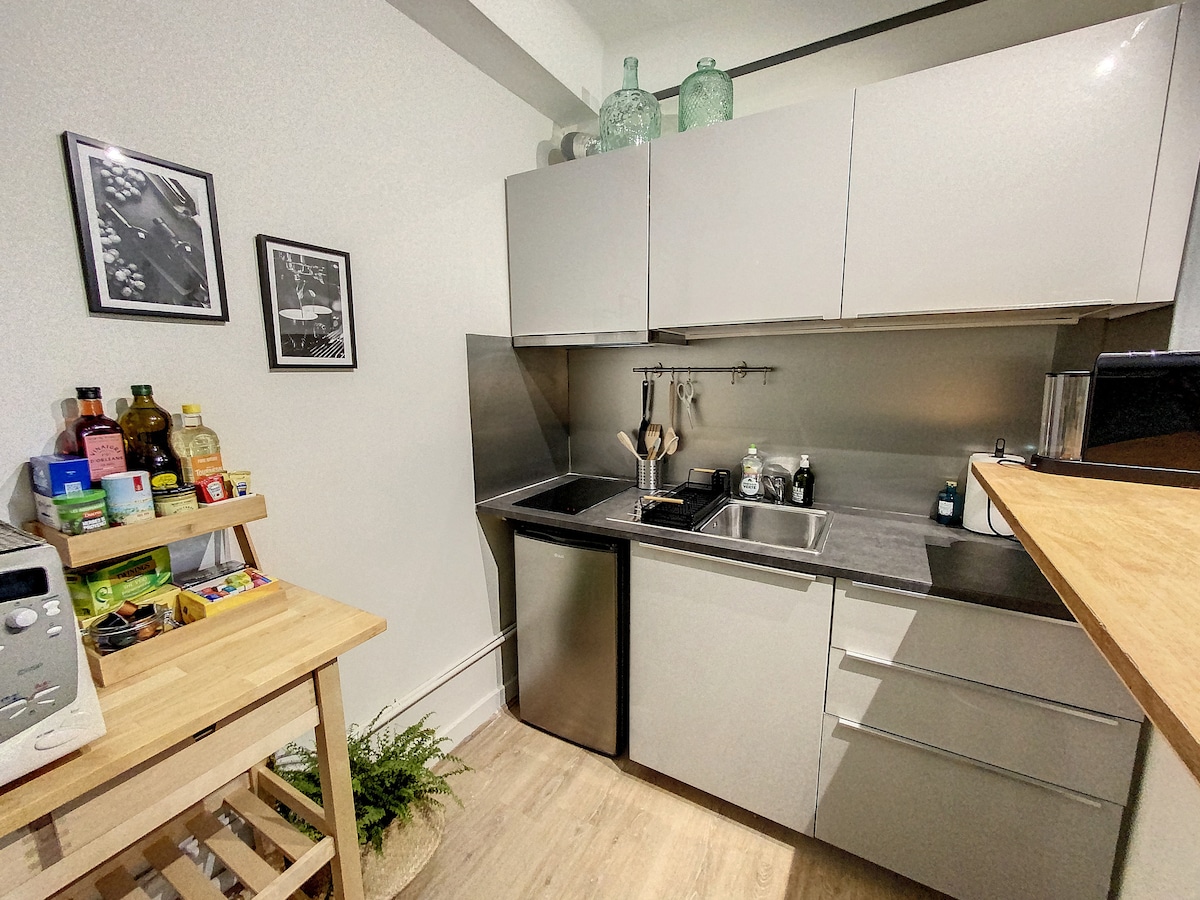 Šarmantan stan se idealno nalazi na obalama Loireta, 300 m od centra grada Oliveta, 1, 2 km od Zenita i Kometa, tramvajska linija A i 10 metara od autobuske linije 1. Imate ulaz sa ormarom, dnevnu sobu sa opremljenom kuhinjom, spavaću sobu sa garderobom, kupatilo, nezavisni WC. Uživaćete na balkonu sa pogledom na zeleni park. Parking je besplatan u sklopu objekta. Uživajte u elegantnom, centralnom smeštaju za posete Orléans i njegovom regionu.