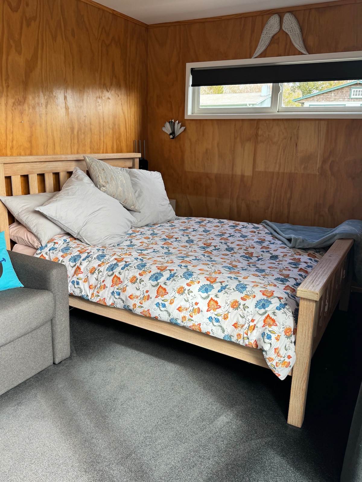 Escape to the tranquility of Kaitake Kabana, an off-grid studio retreat space, nestled in the foothills of the Kaitake Ranges. This space is ideal for two, perfect for couples looking for a getaway (but can sleep up to 4 people with an extra mattress on the floor). The bathroom space and kitchenette are detached from the main living space. There is no wifi here and limited reception, come to embrace the serenity and switch off from the hustle and bustle of everyday life.