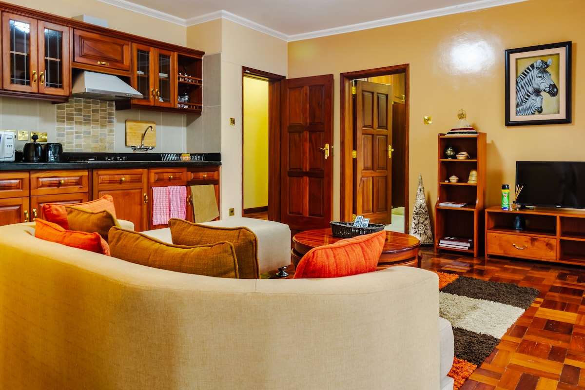 Uživajte u boravku u ovom udobnom i elegantnom namještenom stanu. Nalazi se u lisnatom predgrađu Najrobija u području Lavington okruženo restoranima i kafićima. 10 minuta hoda do 3 različita tržna centra i 20 minuta vožnje do aerodroma. Stan je moderan, moderan sa bračnim krevetom za maksimalnu udobnost. I veliko unutrašnje dvorište za uživanje u svežem vazduhu. Brz i pouzdan Wi-Fi i pametni TV sa pretplatom na Netflix. Potpuno opremljena kuhinja i brzi liftovi. Opustite se u našem dobro održavanom bazenu i teretani