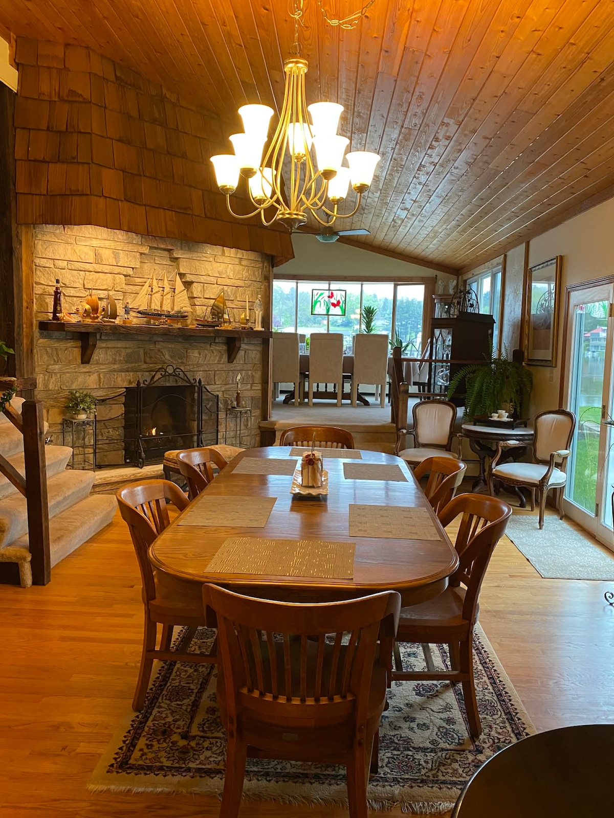 Bring the whole family to this great place with lots of room inside and out for fun in a private Riverfront Village Location. Salt water pool with slide, Multiple decks with conversation areas. Acre+ setting, deep water docks, great fishing and private on-site boat launch. Cornhole, supplied Canoe and firepits to enjoy. 5 person hot-tub, Sauna off game-room with darts and pool table. Outdoor grills and fully stocked Kitchen. Want to eat out? many quality restaurants of all appetites nearby.