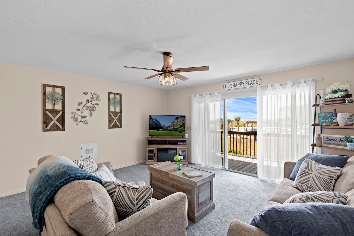 Opuštajući kondominijum samo 3 km od plaže! Restorani, barovi, prodavnice i putt putt u neposrednoj blizini! 5 minuta vožnje do plaže. 1 glavna spavaća soba sa sopstvenim kupatilom, spavaća soba sa krevetima na sprat i sunčana soba sa dnevnim krevetom sa pomoćnim krevetom. Drugo kupatilo se nalazi pored druge spavaće sobe. Natkriveno dvorište za opuštanje na otvorenom. Dostupno gostima Pristup digitalnim bravama će pružiti jedinstveni kôd koji možete da koristite tokom trajanja.