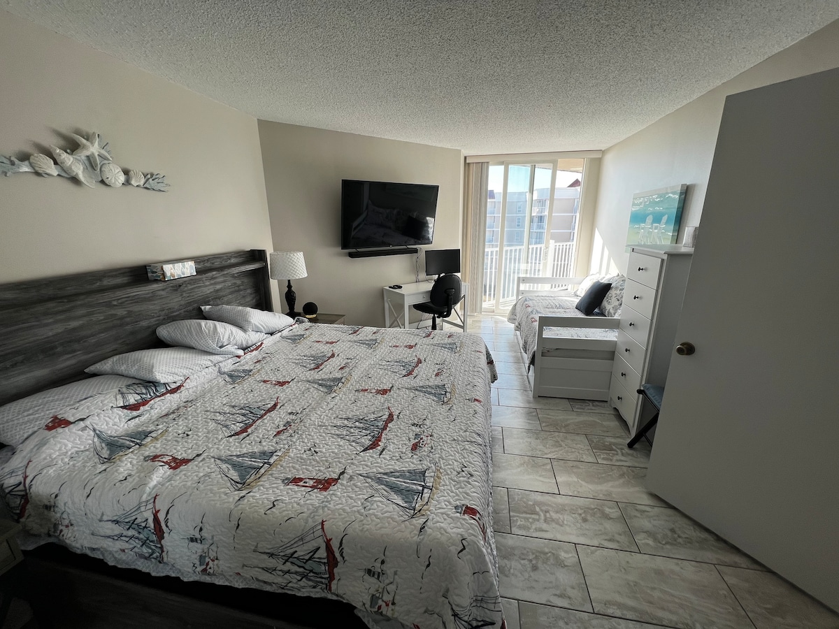 Vrhunsko utočište na plaži u ovom kondominijumu sa 1 spavaćom sobom i 1,5 kupatilom sa privatnim balkonom - savršeno utočište za porodice, parove ili putnike koji putuju sami. Uživajte u dovoljno prostora s luksuznim bračnim krevetom, dvostrukim krevetom na sprat i kaučem na razvlačenje. Uronite u opuštanje uz bazen, ostanite aktivni u teretani i doživite praktičnost pranja veša u sklopu objekta. Sa privatnim pristupom plaži na samo nekoliko koraka, vaš odmor uz more vas čeka! * Obezbijeđena je čista posteljina, peškiri za kupanje, toalet papir, papirni ubrusi, šampon, regenerator i sapun.