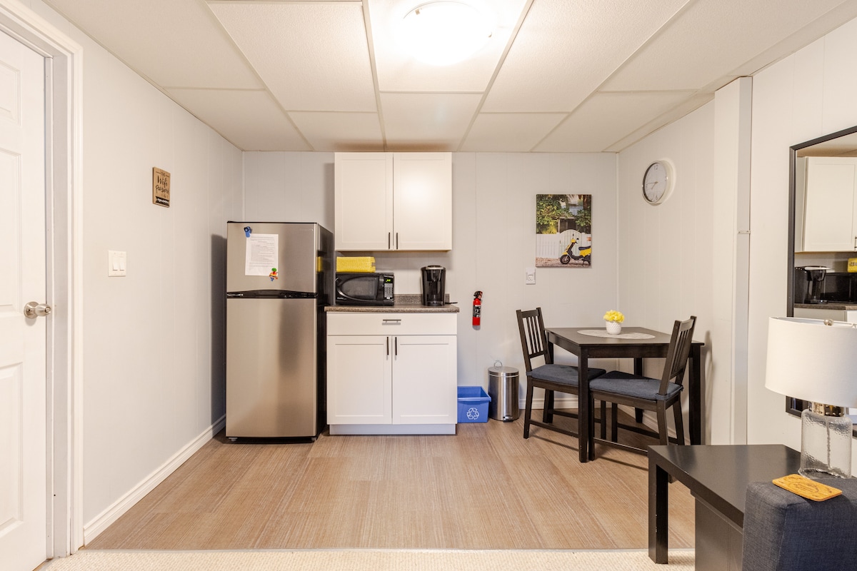 Otkrijte Karlton, Elora. Elegantno utočište na samo nekoliko koraka od šarmantnih prodavnica, mjesta za vjenčanja i divnih restorana u selu. Ovaj centralno smešteni apartman na nižem nivou (ispod našeg porodičnog doma) je potpuno privatan i savršen za parove. Dodatni gosti se mogu dodati uz naknadu. Istražite slikovitu ljepotu kanjona Elora i lokalnu umjetnost, a zatim se vratite i opustite u hidromasažnoj kadi. Doživite najbolje od Elore u prostoru dizajniranom za opuštanje i uživanje. Radujem se što ću vas ugostiti!