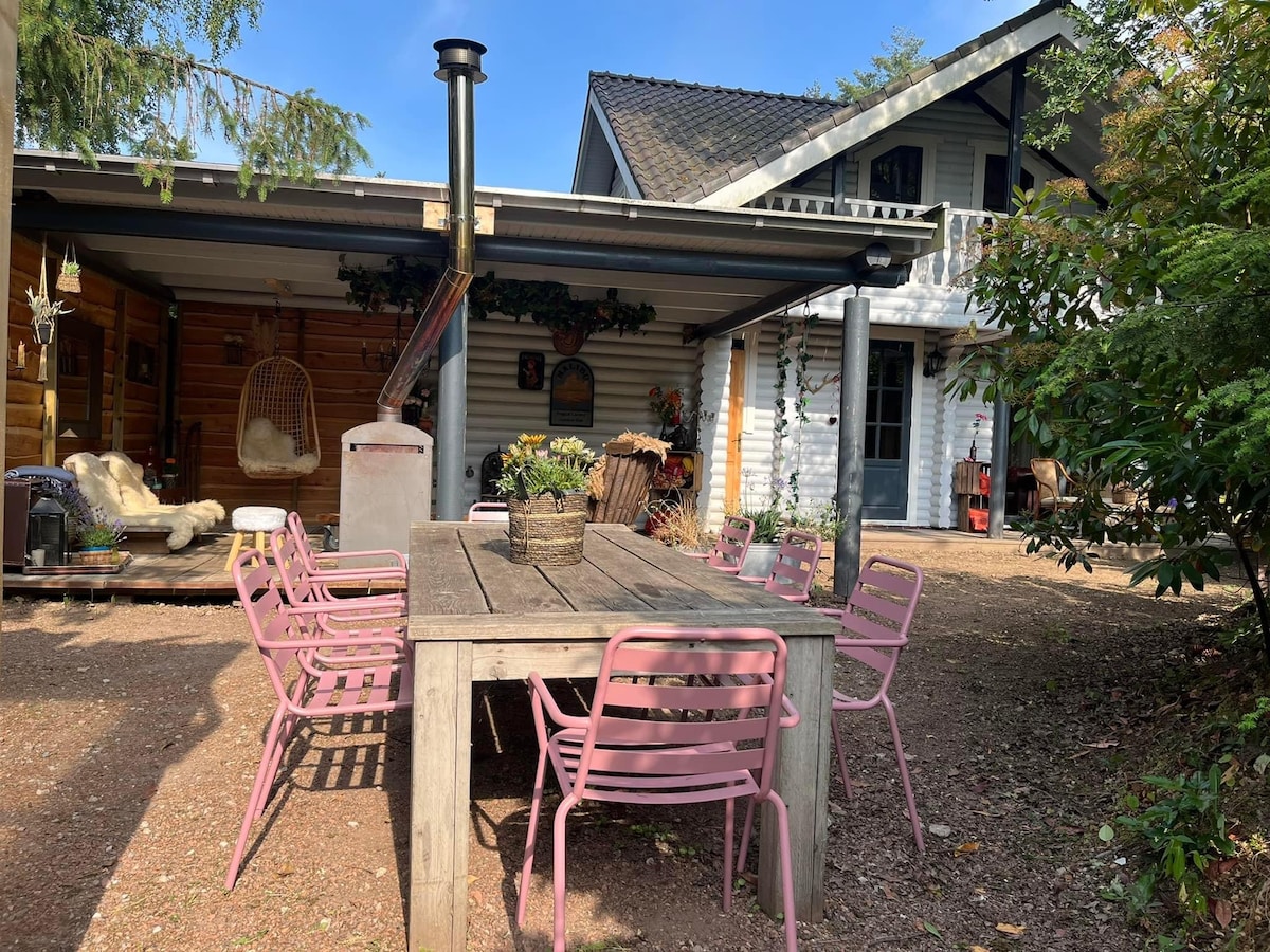 Our holiday home is located between Groenlo and Winterswijk, near the Korenburgerveen nature reserve. It's situated on our property, detached, with stunning views and plenty of privacy. Relax in the hanging chairs or cozy up by the wood-burning stove. Enjoy your own large garden with a seating area, pizza oven, outdoor pool, fire pit, and, upon request, a hot tub and Finnish sauna! There are also amenities to complete your holiday: a swimming pool, pétanque court, playground, and trampoline.