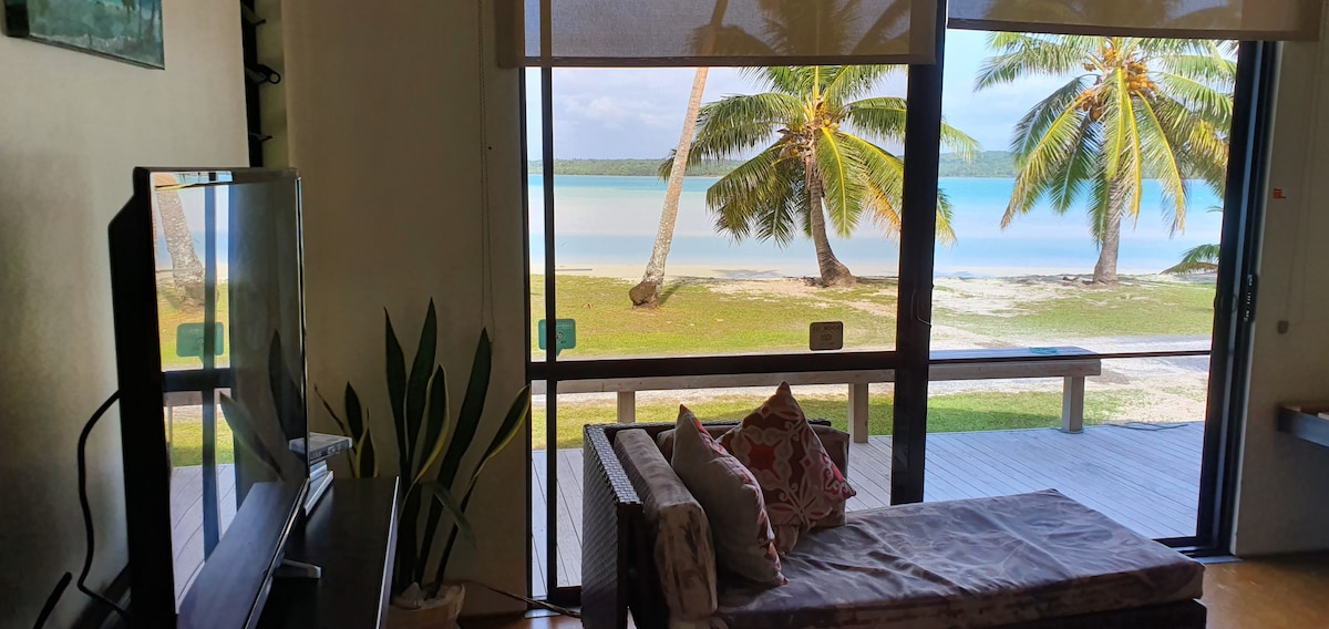 Kia orana, FREE WIFI AVAILABLE. Beautiful Beachfront 3 bedroom, 2 bathroom self contained villa, located on one of the most beautiful beach's in the world! Kayaks available, villa has air-conditioning in all the bedrooms. Kindly note that extra Person charges apply, Enter the number of people staying to receive a Quote. Kindly note that If you are a couple you receive 1 room with aircon, instead of 2 rooms with aircon. *Beach at your doorstep *5 Minute Walk to Cafes & Restaurants