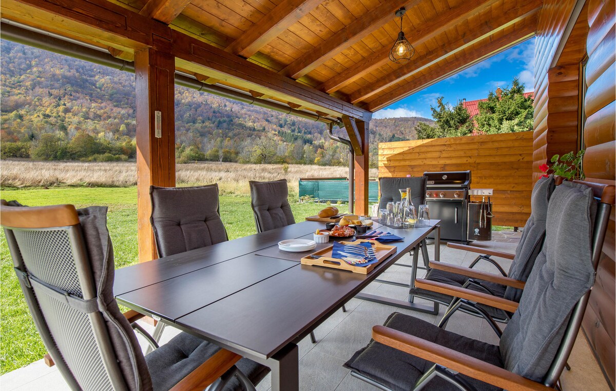 Smeštena u srcu Gorskog kotara, ova moderna planinska kuća sadrži 3 spavaće sobe, 3 kupatila, finsku saunu i zatvoreni prostor sa hidromasažnom kadom.
