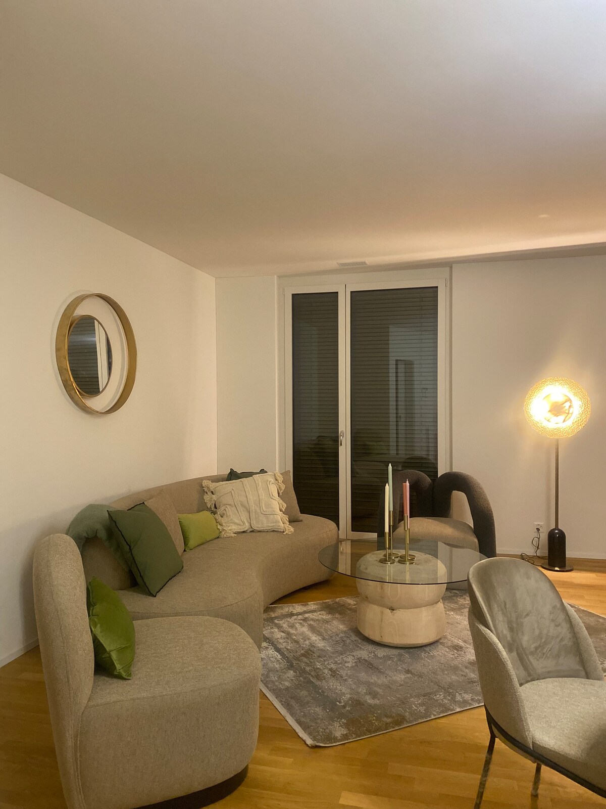 Luksuzno dizajniran stan u srcu Glattbruga, dobro povezan sa autoputem i mrežom javnog prevoza grada i aerodroma (Iako je udaljen samo 5 minuta vožnje od aerodroma, zvučna izolacija stana je veoma dobra i ne možete da čujete buku aviona u zatvorenom prostoru.) 3 minuta hoda od dve železničke stanice možete da istražite grad, a u blizini se nalaze i njegovi noćni život, supermarketi, restorani i fitnes.