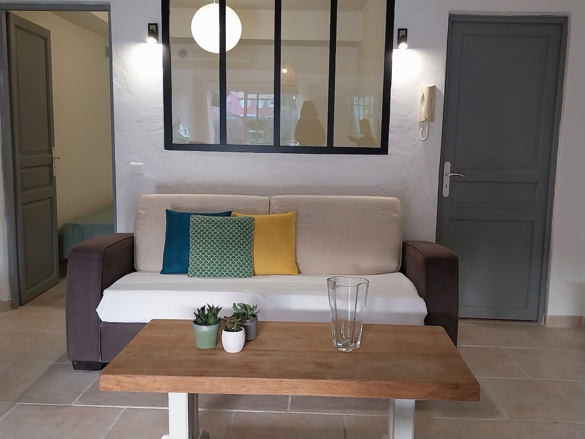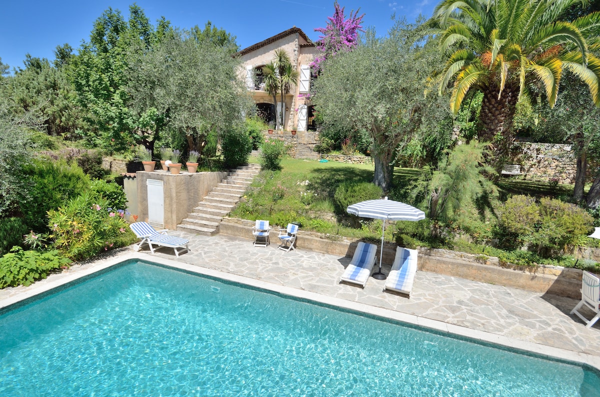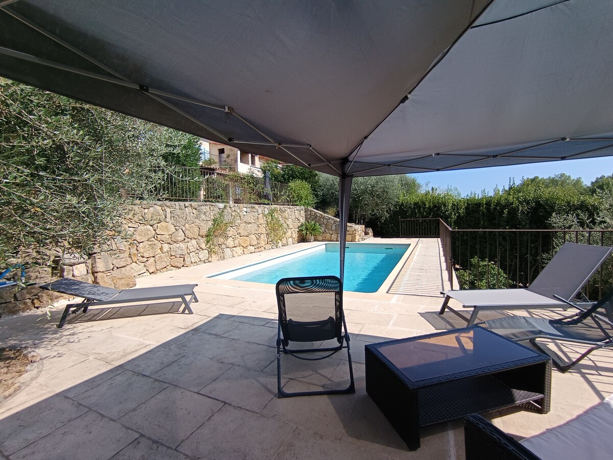 Petit STUDIO très bien équipée avec entrée et parking privé dans une grande Propriété avec piscine et jacuzzi chauffés du 10 avril au 30 octobre . La piscine extérieur et jacuzzi ainsi que le jardin sont partagés mais assez grand pour profiter chacun son espace de tranquillité . Je vis dans la bastide principale . Un Havre de Paix entouré d oliviers centenaires . A 35 minutes de l aéroport de Nice et divers villages provençaux et 14km de Cannes . Tele grand écran /abonnement Netflix