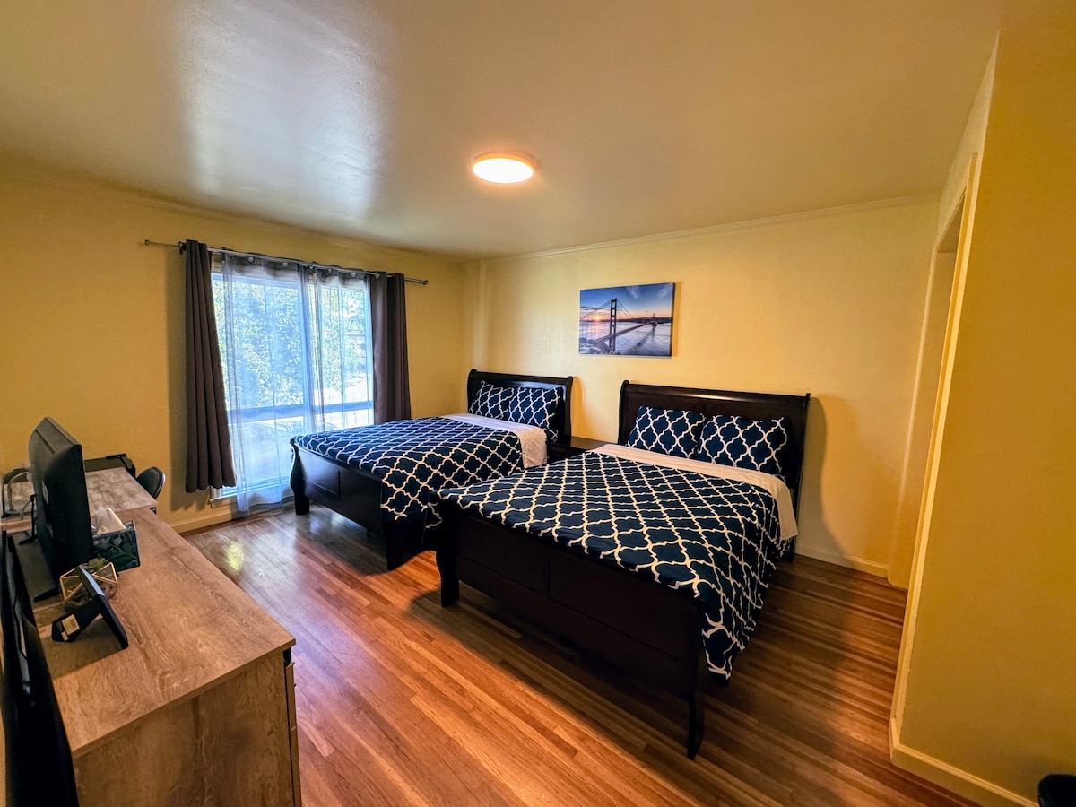 👋 Welcome to our spacious, clean, private getaway studio on Southern Hill in Daly City. Escape the hustle and bustle of the city. Enjoy a stunning view of day/night in clear days ☀️ - Easy street parking - Great Summit Loop Trail at San Bruno Mountain (6-min🚘) - Cow Palace Arena (8-min🚘) - H Mart grocery mall (10-min🚘) - 9.2 miles to SFO (17-min🚘) - 6.7 miles to Civic Center(>30-min🚘 w/ traffic or 20-min🚘 w/o traffic) - 11 miles to Fisherman's Wharf(>35-min🚘 w/ traffic or 23-min🚘 w/o traffic)