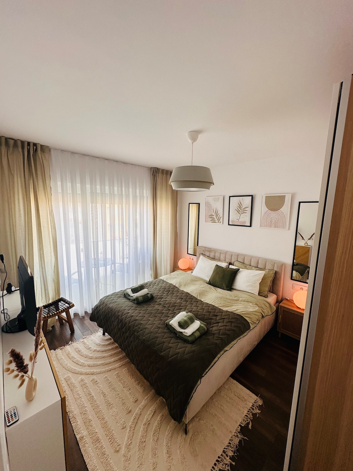 Moderna 2BR oaza Novouređeni stan od 60 m² sa dizajnerskom završnom obradom i prozorima sa trostrukim staklom za vrhunski mir. Savršeno za porodice/parove koji traže udobnost: • Vrhunski kreveti dimenzija 200 x 160 cm • namjenski radni prostor • Potpuno gurmanska kuhinja • Klima-uređaj, 2x pametni televizori, privatni parking Glavna lokacija: • 15 minuta hoda do istorijskog centra • 3 minuta hoda do prodavnica Prima • 6 minuta vožnje do aerodroma • 2 minuta hoda do tramvaja/autobusa Mirno utočište: Strogi policijski čas za buku nakon 22:00 - pravila bez cipela - Zabranjeni kućni ljubimci/pušenje