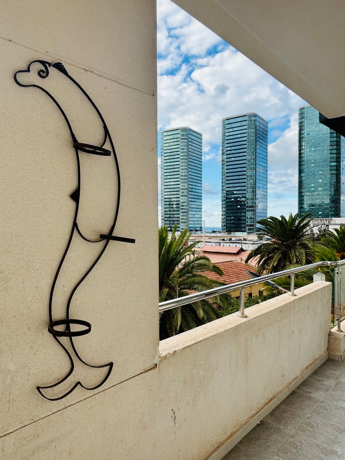 • 1 spavaća soba sa bračnim krevetom - bračni krevet 200 cm * 200 cm • 2 LG Smart TV-a sa Netflix-om • 1 jednostruki dušek • Dnevni boravak - fotelja u obliku slova L • Trpezarija • Potpuno opremljena kuhinja • Balkon s pogledom na more • Fitnes centar u rezidenciji • Krevetac (na zahtjev) Rezidencija se nalazi u srcu Orana ispred obale, 9 km od tvrđave Santa Kruz i 15 km od aerodroma Ahmed Ben Bela.