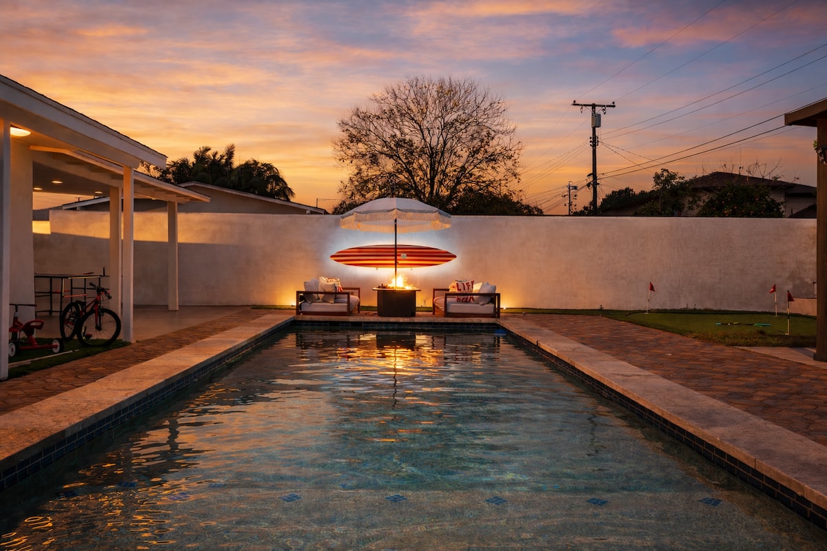 Uživajte u putovanju sa porodicom u ovom elegantnom smještaju koji se nalazi u centru grada i udaljen je 8 minuta od Diznilenda, kratkom vožnjom do netaknutih plaža i mnogih drugih destinacija! ☆ Uživajte u hidromasažnoj kadi, okupite se u bioskopu sa svježim kokicama i pustite djecu da uživaju u igralištu u dvorištu i igraonicama (ili vi, mi ćemo reći!) ☆ Ovaj dom je udaljen svega nekoliko minuta od mnogih nevjerovatnih destinacija kao što su Disneyland, Knott 's Berry Farm, Anaheim Convention Center, Laguna, Huntington, Newport), Angel Stadium i Honda Center.