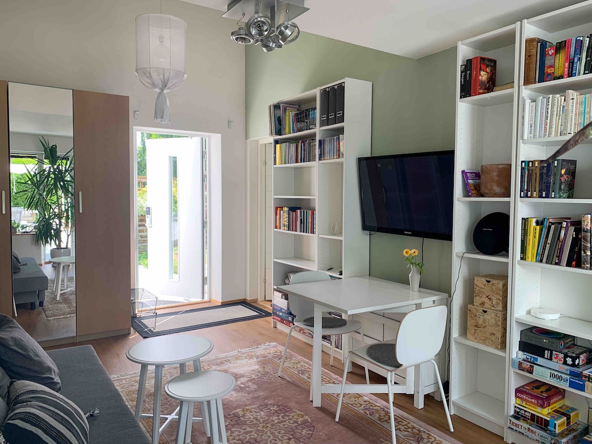 Tri prozora kanalizuju sunčevu svetlost u naš uređeni studio apartman površine 28m2 u podrumu našeg divnog istorijskog doma. Nalazimo se na samo 10-15 minuta hoda (800 metara) zapadno od centralne autobuske/željezničke stanice Örebro. Privatni ulaz i mnogi sadržaji su osmišljeni da vam pomognu da se osećate opušteno i bezbedno. Neki od njih uključuju brzi Wi-Fi, čajnu kuhinju, frižider, mikrotalasnu pećnicu, TV i osnovnu opremu za kuvanje... kao i besplatne bicikle koji će vam pomoći da istražite prelepi Orebro.