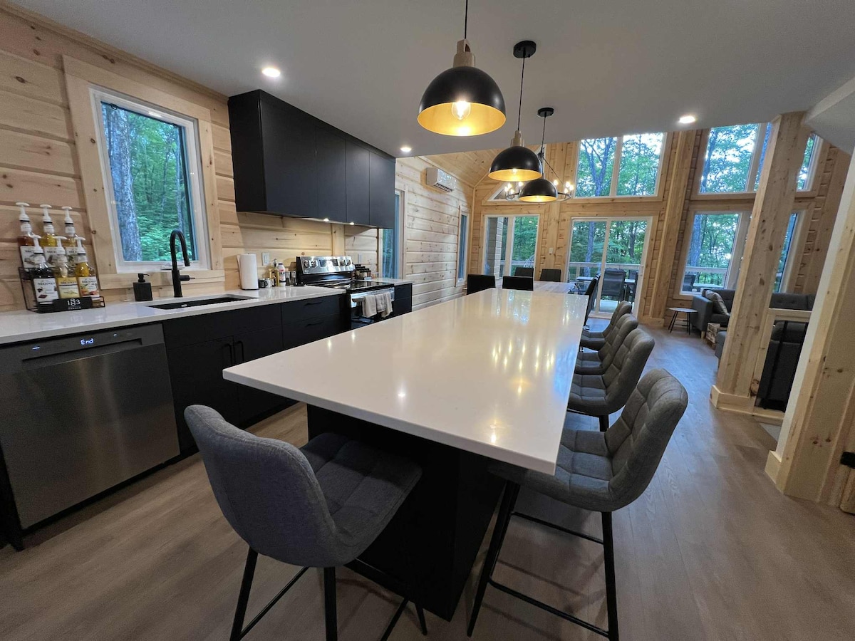 Šarmantna novouređena kuća. 2 koraka od centra Eastmana u prelepom području Estrie. Uživajte u prirodi i ljepotama. Prekrasan spoljni prostor sa spa centrom i saunom koji je dostupan tokom cijele godine, sa kaminom. U blizini svega i vrlo dobro locirano: - Prelepe staze (skijanje,planinarenje, skijaško trčanje) - Više planina (Bromont, Sutton, Owls Head) - Dobri restorani i pabovi - Biciklističke staze - Mon Orford (8 minuta) - Magog (10 min) -Lacs - Zoo