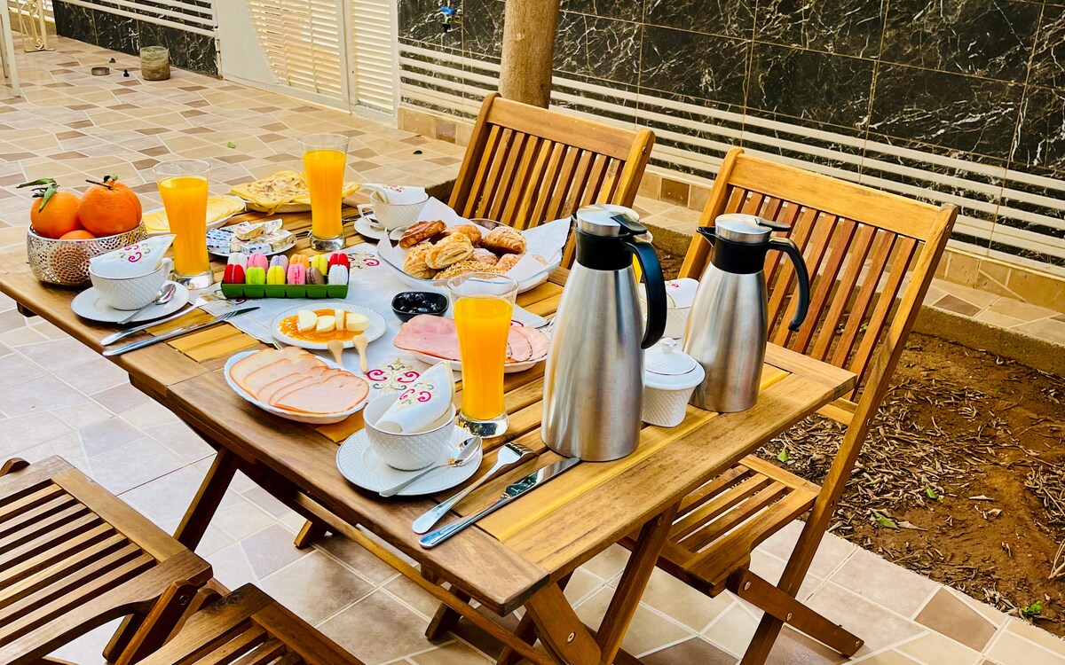 Doživite luksuz u našem prostranom stanu, samo 5 minuta od bolnice Mohamed VI i 2 minuta od centra grada Oujda. Uživajte u mirnom i bezbjednom okruženju, savršenom za porodice, prijatelje ili putnike koji putuju sami. Uz mnoštvo prodavnica i atrakcija u blizini, imaćete sve što vam je potrebno na dohvat ruke. Opustite se na privatnoj terasi okupanoj suncem i iskoristite bezbjedan parking. Udobnost i praktičnost vas čekaju - rezervišite smještaj već danas!
