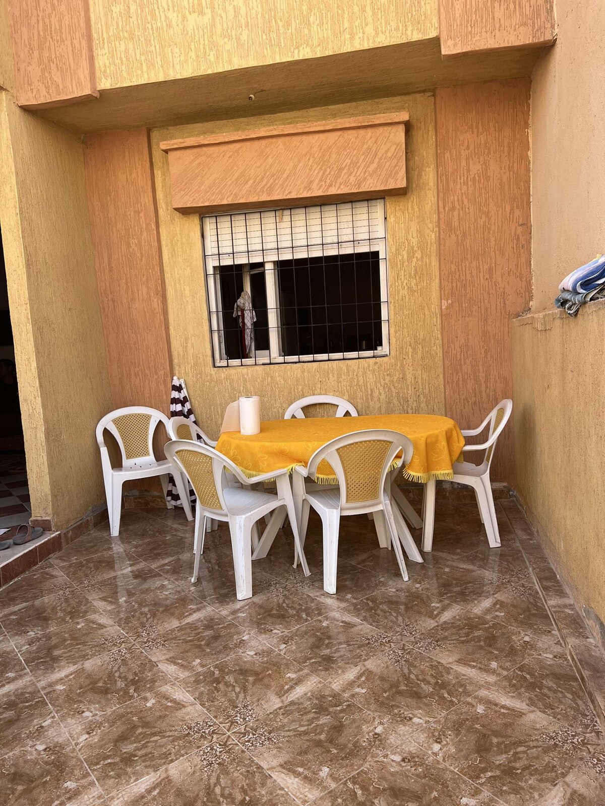 Maison à louer située à Saïdia très lumineuse et ventilée. A 7 mn de la plage. Équipée de 2 chambres, 1 grand salon, 1 cuisine, 1 sdb avec wc, 1 patio. Au 1er Etage, un toit terrasse.