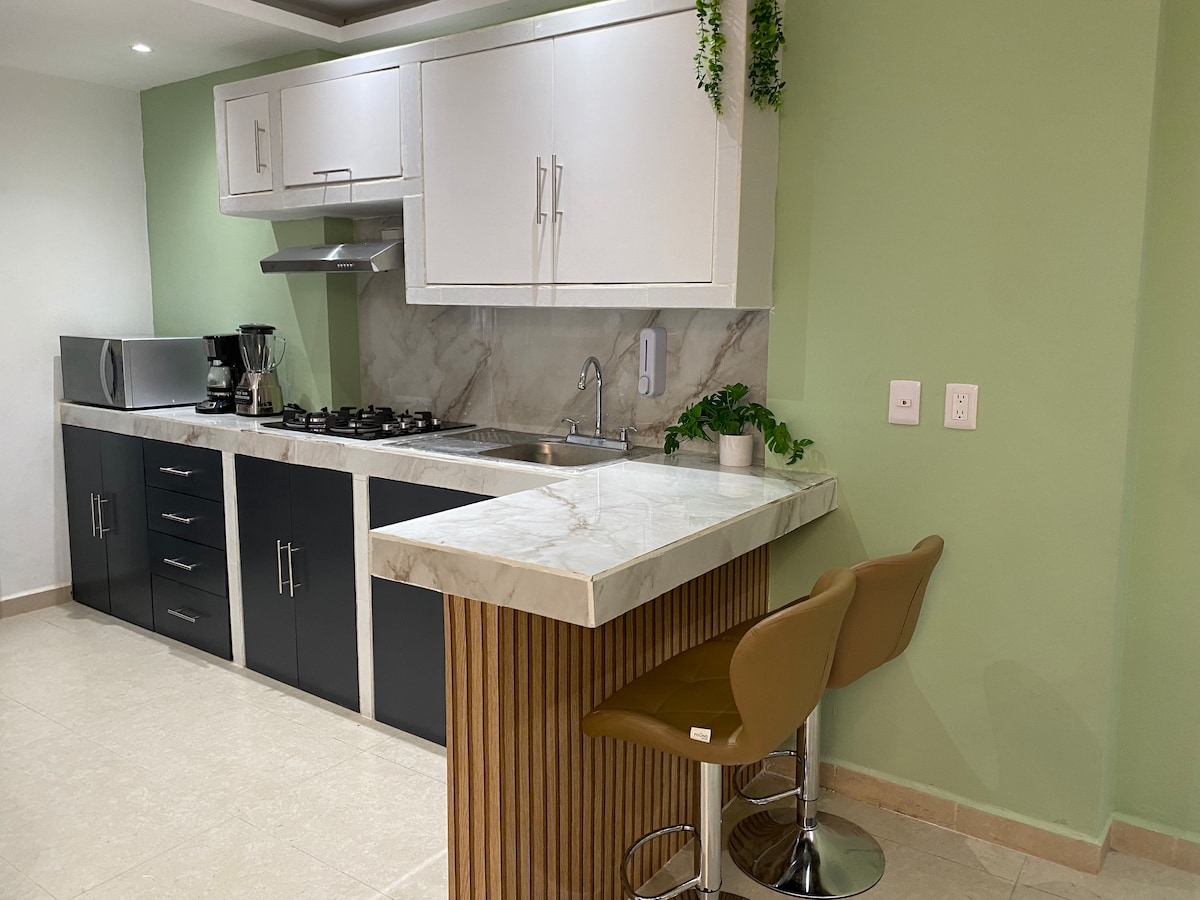 Novouređeni stan u potkrovlju. Moderan i prostran, sa svim neophodnim elementima kako bi se gosti osjećali kao kod kuće, udobno, opušteno i u prijatnom okruženju. Smješten u srcu Orizabe, omogućava pješački pristup centru grada kako biste upoznali i uživali u njegovim atrakcijama. Pozivamo vas da posjetite naš kafić „Breve Café” koji se nalazi nekoliko koraka od potkrovlja, a ako ugošćavate kod nas, imaćete poseban popust.